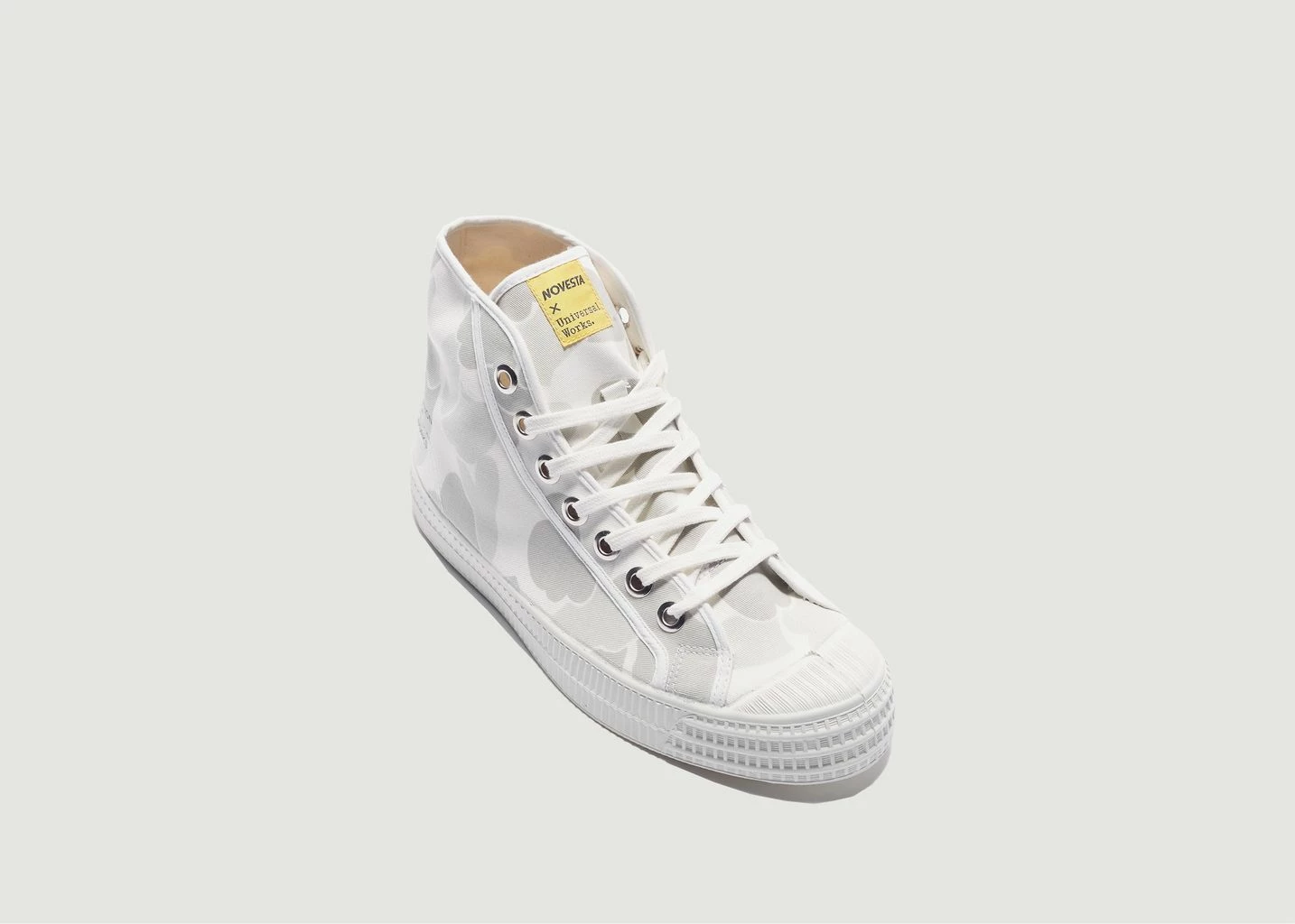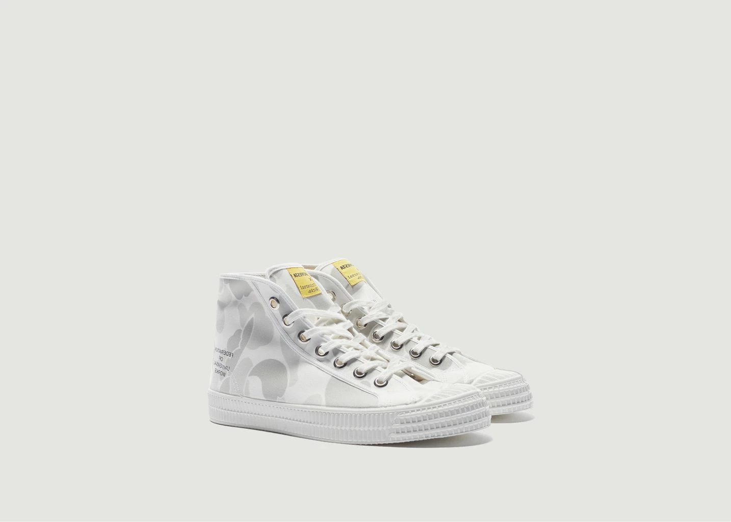 Cotton high top sneakers from the collaboration between Novesta and Universal works • Ecru color • Camouflage pattern • Thick rubber sole • Flat cotton laces • Rubber reinforcement on the toes
