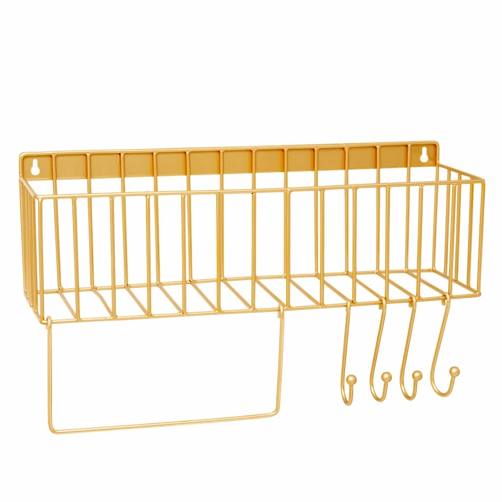 The perfect metal shelf in gold with hooks can be used for a bit of everything! Place it in your bathroom for your toothbrush and make up or in the kitchen for mugs, cups and clothes. It will brighten up any wall in the house.