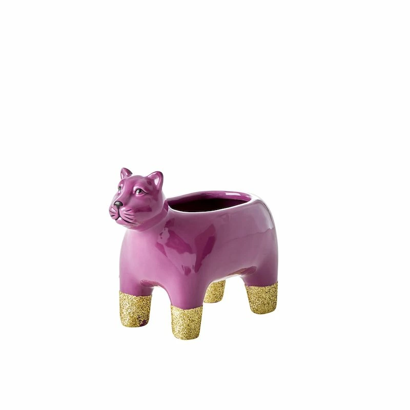A charming tiger shaped ceramic flower pot, he is a beautiful Bordeaux colour and has glittery golden legs. This Mythical Tiger flower pot would make a great house warming gift, or bring him along to a dinner party in lieu of a bottle of Bordeaux.