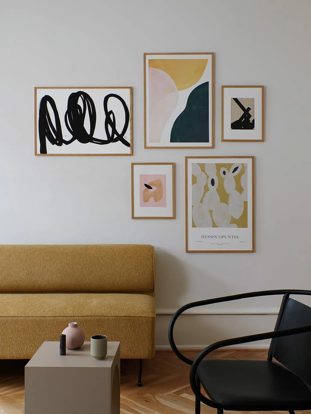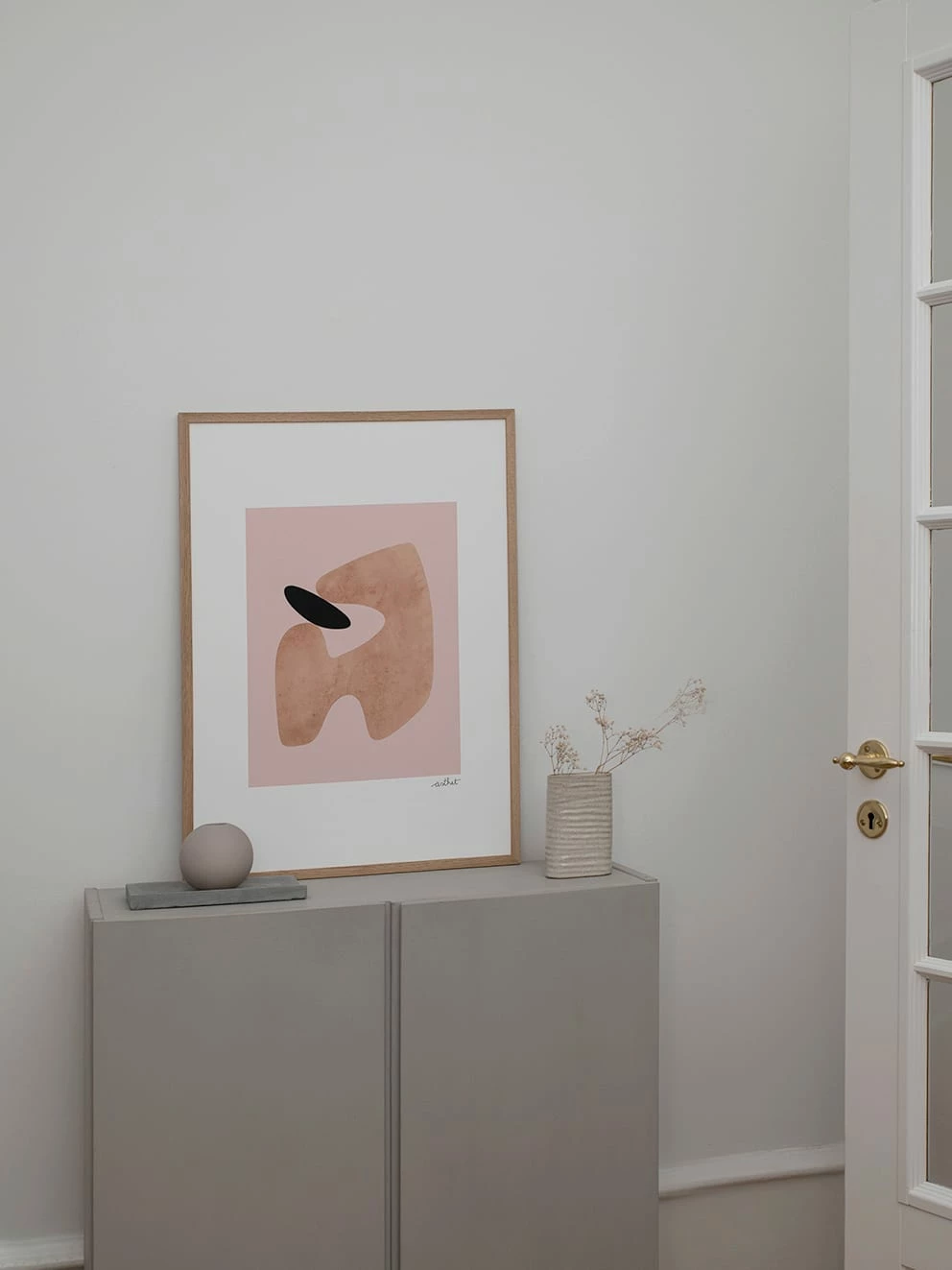 Art prints are the perfect way to elevate the look of any scheme. The Artist Asthet has captured character and charm in the character of this abstract form. The mix of a neutral palette with a textural finish and dark contrasting shapes creating a harmonious but striking look.