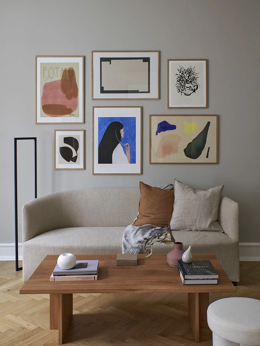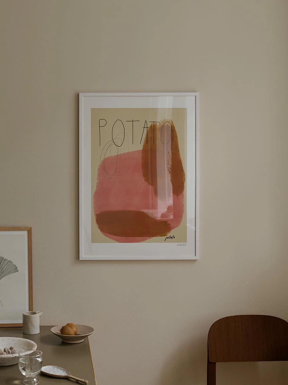 Wall art prints are the perfect way to elevate the look of any scheme. The Artist Lisa Wirenfelt has captured a character and a uniqueness with this abstract painting in nudes and browns, reading potato in pencil line.