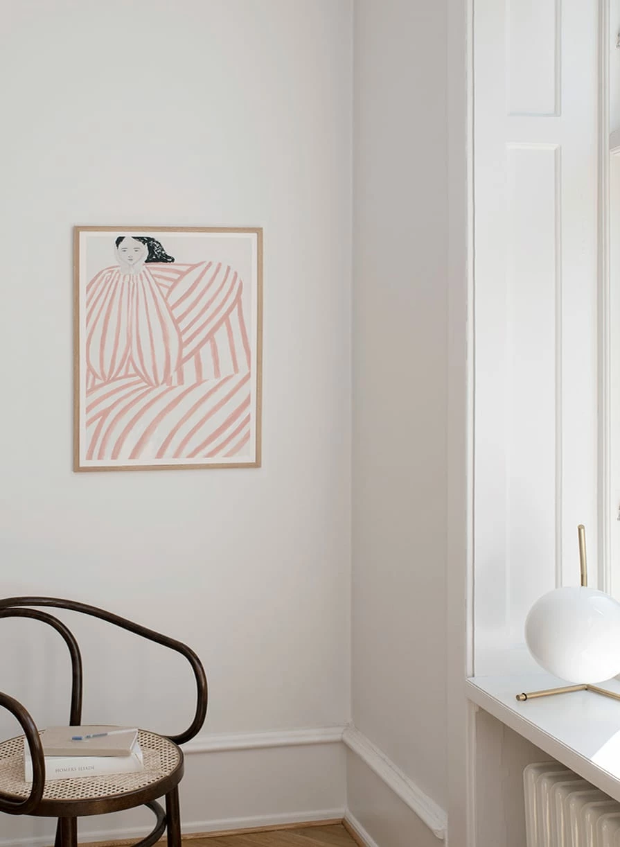 Wall art prints are the perfect way to elevate the look of any scheme. The Artist Sofia Lind has captured a character with a calming and soft feel, the mix of neutral palette and careful brushstrokes make for a balanced image that would enhance your interior.